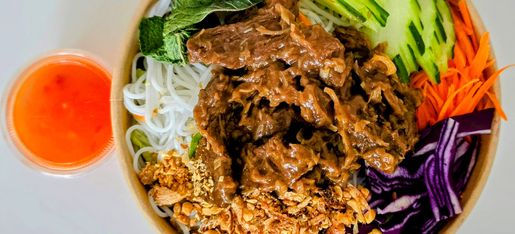 Bò bún bœuf + nem • Curry vert bœuf 🌶 • Riz jasmin • Riz cantonais • Nouilles sautées • Tom Yum Kung 🌶 • Fruits de mer curry rouge • Massaman poulet • Biryani poulet • Porc basilic 🌶 • Salade poulet épicée + riz 🌶 • Pilons poulet thaï 🌶 • Riz gluant coco & haricots rouges • Soupe cartilage de porc